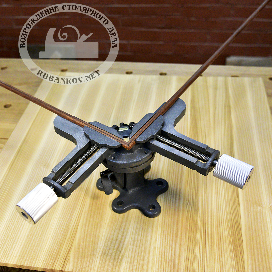 Высокопрочные тиски для точного соединения под углом 90 градусов, подгонки и склеивания рамок и других профилей. Тески могут поворачиваться на 360 ° на основании и наклонятся под углом до 90 ° и фиксироваться в этом диапазоне. Центральный отсек имеет вставку из дерева и позволяет выполнять работу, по заусовки, (когда два штапика зажимается в нужное положение и пропиливаются одновременно). Пять отверстий диаметром 8 мм в основании для надежного крепления тисков к верстаку. Изготовлены тиски из чугуна. Диапазон зажимаемых заготовок от 3 мм до 103 мм.