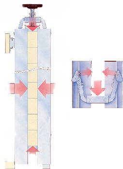 Используется для склейки деревянных щитов без ограничения по длине. Благодаря специальной запатентованной системе на щит оказывается равномерное давление с 4-х сторон не повреждая его (усилие 800 кПа). Минимальная толщина щита не ограничена. Значительная экономия места за счет вертикального расположения. Материал пресса - анодированный алюминий стоек, стальная фурнитура. В комплекте с прессом специальная стяжка для крепления на стену.