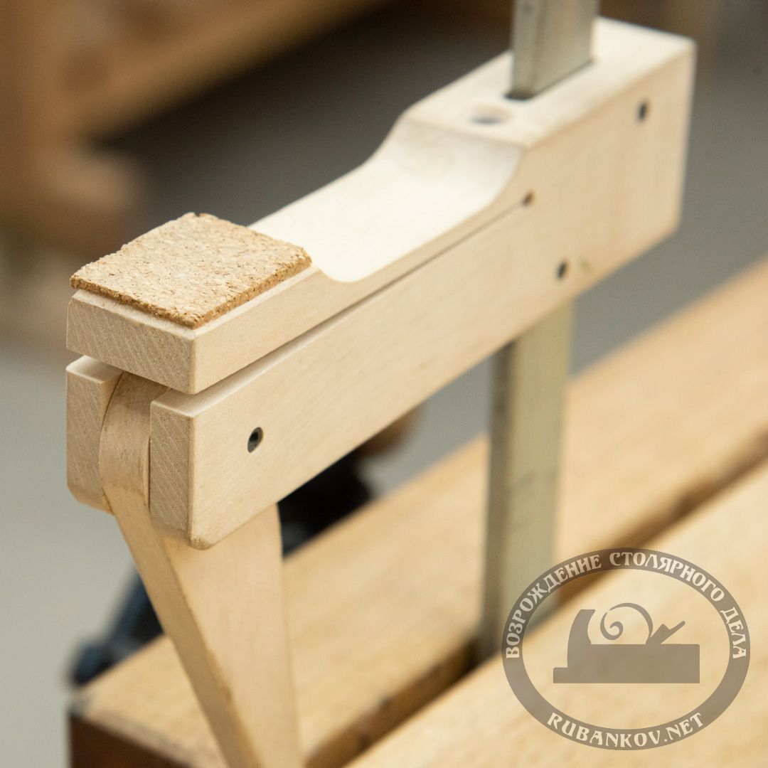 Струбцина рекомендуется к применению для быстрой фиксации при работе с музыкальными инструментами, при реставрации, при выполнении резчикцих работ, а так же при работе столярными стамесками. Деревянный материал губок прощает соскакивание режущего инструмента и не портит резущую кромку при ударе о них. Эксцентрик и подвижная губка позволяют работать с одной рукой.