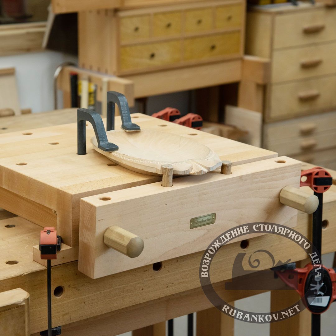 Стол для резьбы по дереву с тисками, тиски являются зажимным устройством для комфортной работы и расширяют арсенал возможностей любого резчика по дереву. Резчицкий стол устанавливаются на любую поверхность и фиксируются струбцинами или другим схожим методом. Рабочая зона тисков приподнимает закрепленную заготовку на комфортную высоту для работы режущим инструментом.