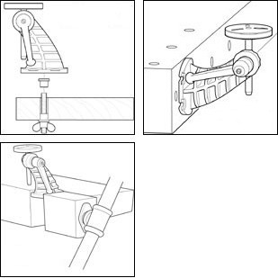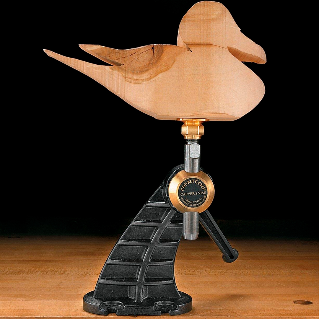 Тиски для резьбы Veritas Carver's Vise могут быть установлены на столешницу и зафиксированы на 4 винтами, или могут быть зажаты в любых других тисках (для чего подошва тисков имеет 2 плоские стороны) или прикручиванем винтом по центру через отверстие 19 мм под верстачные упоры на столешницах толщиной от 16 до 101 мм (для этого дополнительно заказывается отдельный винт с барашком). Производство Veritas (Канада).