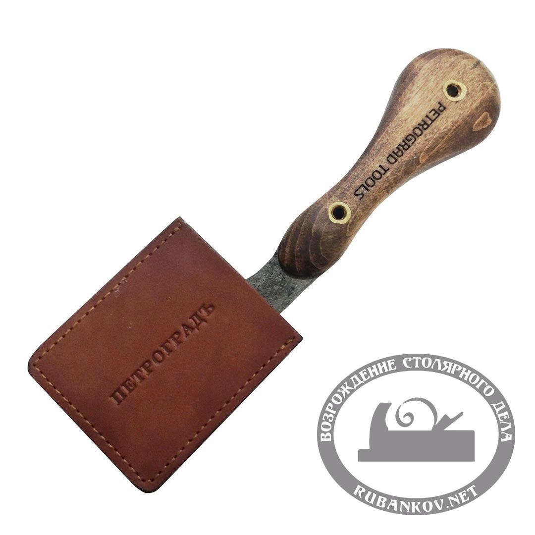 Нож шорный ПЕТРОГРАДЪ, модель 3. Нож шорный предназначен для раскроя и шерфование кожи. Mожно использовать для прямолинейного реза и торцевания кожи. Полукруглый широкий клинок с двусторонней и односторонней заточкой. Длина РК 65мм. Ширина клинка - 30 мм, длина - 70-75мм, толщина 1,8-2,0мм. Полная длина ножа 180мм. Накладки на рукоять выполнены из клена, покрыта маслом. Длина рукояти 105мм. Полотно выполнено из углеродистой сталь 9ХФ, закалена до твердости 57-61HRc. Инструмент ПЕТРОГРАДЪ заточен и готов к работе. Комплектуются кожаными чехлами.