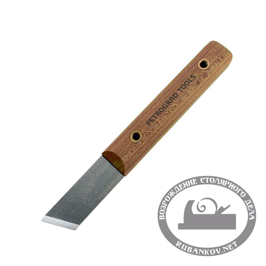 Ножи ремесленные ПЕТРОГРАДЪ, косая заточка 60град, 20мм/162мм. Лезвие выполнено из инструментальной высокоуглеродистой стали. Удобная прямоугольная рукоять из твердых пород древесины, покрыта маслом. Заточен и готов к работе. Ножи с косой заточкой имеют широкий спектр применения (резьба, разметка, работы с картоном, маркетри, интарсия, фанерование, работа с кожей, производство музыкальных инструментов, моделировании и в повседневной жизни, в быту).
