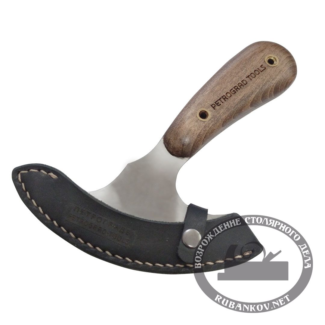 Нож раскроечный ПЕТРОГРАДЪ, модель 3, правая заточка, в чехле. Нож шорный предназначен для раскроя и шерфования кожи. Mожно использовать для прямолинейного реза и торцевания кожи.