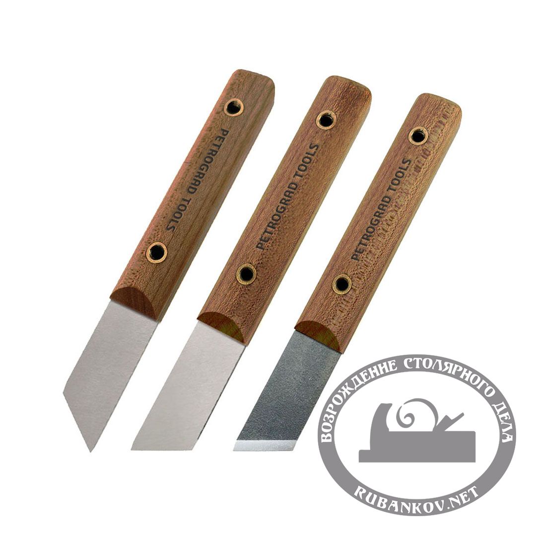 Ножи ремесленные ПЕТРОГРАДЪ, косая заточка 60град, 20мм/162мм. Лезвие выполнено из инструментальной высокоуглеродистой стали. Удобная прямоугольная рукоять из твердых пород древесины, покрыта маслом. Заточен и готов к работе. Ножи с косой заточкой имеют широкий спектр применения (резьба, разметка, работы с картоном, маркетри, интарсия, фанерование, работа с кожей, производство музыкальных инструментов, моделировании и в повседневной жизни, в быту).