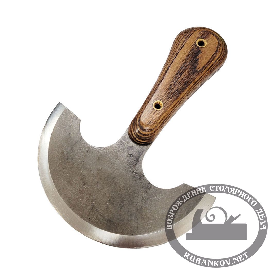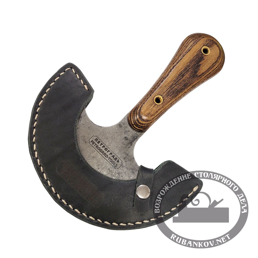 Нож раскроечный ПЕТРОГРАДЪ, модель 1, двусторонняя заточка. Верхние и нижние режущие кромки заточены и доведены до бритвенного состояния и готов к работе. Можно использовать для прямолинейного реза. Нож укомплектован кожаным чехлом. Данный тип ножей используется повсеместно в ремесленном, в кожевенном, в сапожном деле. Нож с круговым лезвием для разрезания нескольких слоев материала. Накладки на рукоять сделаны из ценных пород древесины. Покрыты маслом. Надежно закреплены на 2 латунные заклепки. В комплект входит аккуратный кожаный прошитый чехол. Радиус закругления 60±1мм. Толщина лезвия 1,8-2,0мм. Инструментальная легированная сталь 9ХФ. Закалены до твёрдости 58-61HRC. Общая длина ножа 175мм. Длина рукояти 110мм.