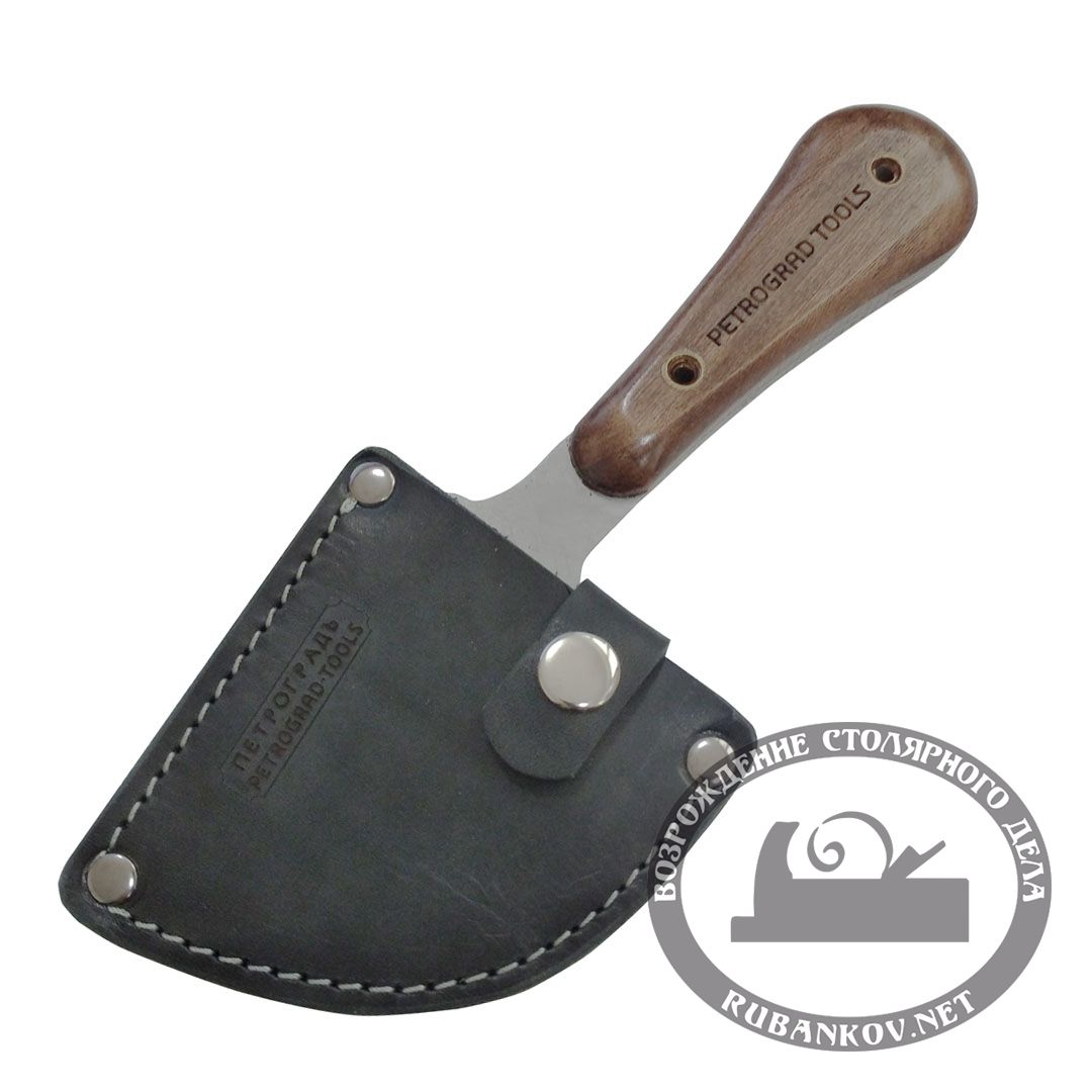 Нож раскроечный ПЕТРОГРАДЪ, модель 2, двусторонняя заточка. Можно использовать для прямолинейного реза и торцевания кожи. Нож укомплектован кожаным чехлом.