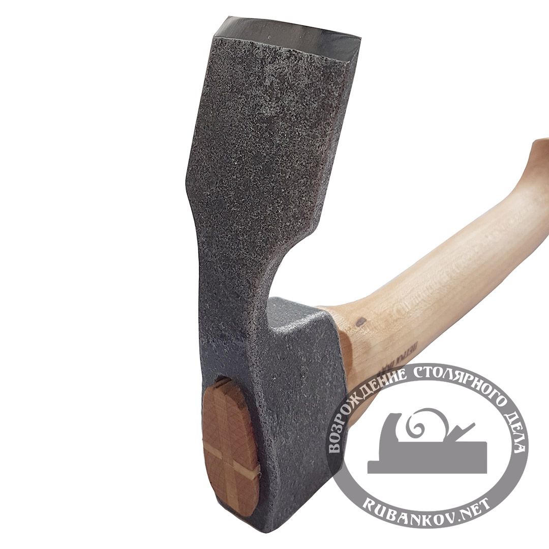 Проушина имеет клиновидную форму. Топорище насаживается и расклинивается на 3 клина.