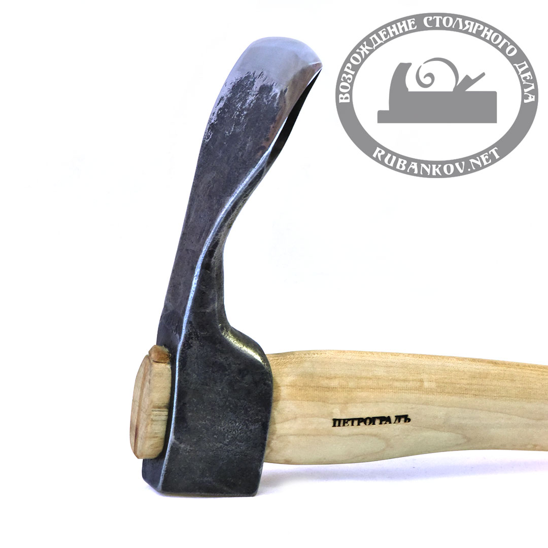Кованое закаленное полотно имеет твердость - 58-60HRc. Отков выполнен из пружинной стали 65 Г. Топорище выполнено из древесины Клёна, и покрыто тунговым маслом имеет изогнутое окончание и фиксировано на деревянный клин. Топорище ПЕТРОГРАДЪ, N9. Все тёсла укомплектованы кожаными чехлами, защищающими режущую кромку от повреждения во время транспортировки и хранении инструмента.