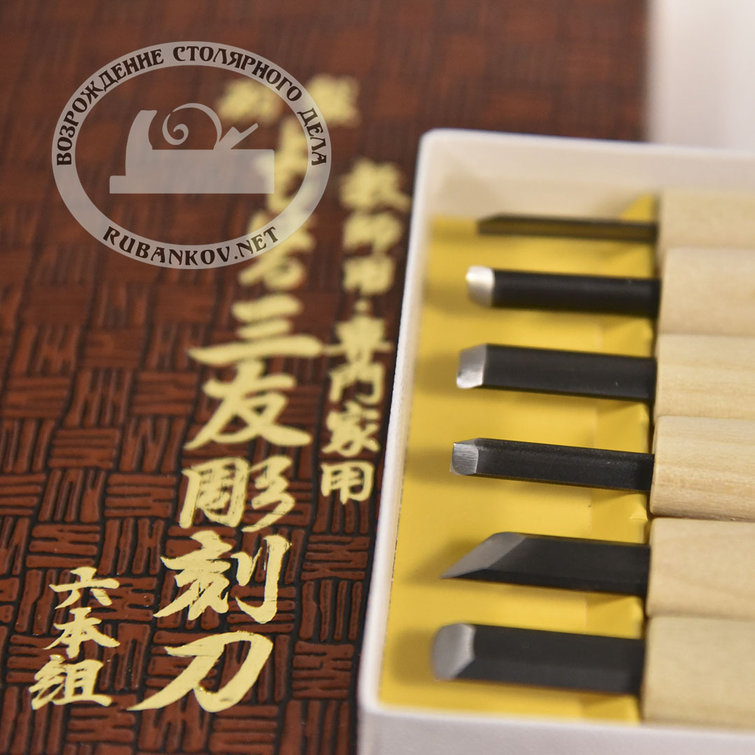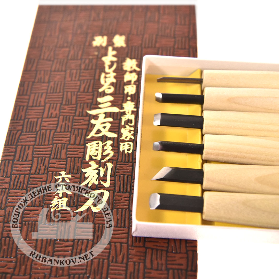 Компания со 100 летней истории изготовления инструментов в Японии предстовляет. Высококачественный инструмент для резьбы по дереву для профессионального использования. Комплектация набора Y-6 (плоский резец, скошенный резец, резец V-образный, Полукруглый резец S [4 мм], Полукруглый резец M [6 мм], Полукруглый резец L [9 мм]) в коробке. Материал: лезвия (ламинированная сталь из V2 / Laminated 420JT) ручка (магнолия) общий размер 210 мм, ручка 180 мм, клинок 30 мм.