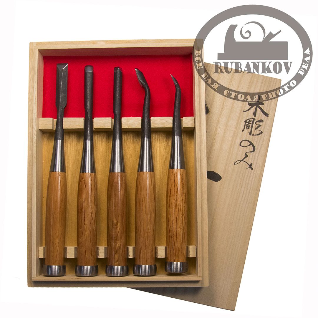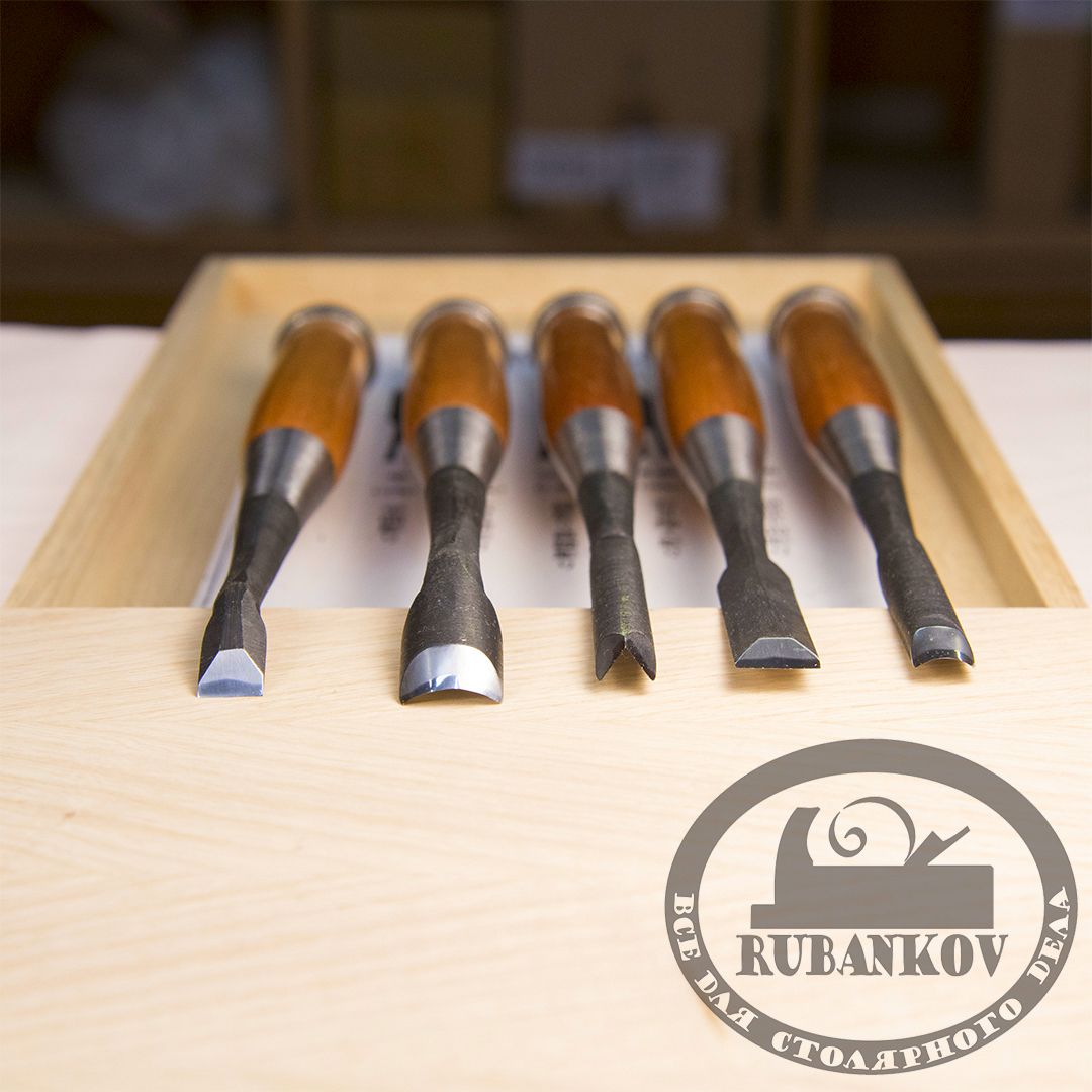 Набор профессиональных японских стамесок MAKOTO. Данный набор состоит из наиболее популярных форм стамесок для выполнения средних и крупных проектов. Стамески выполнены вручную.