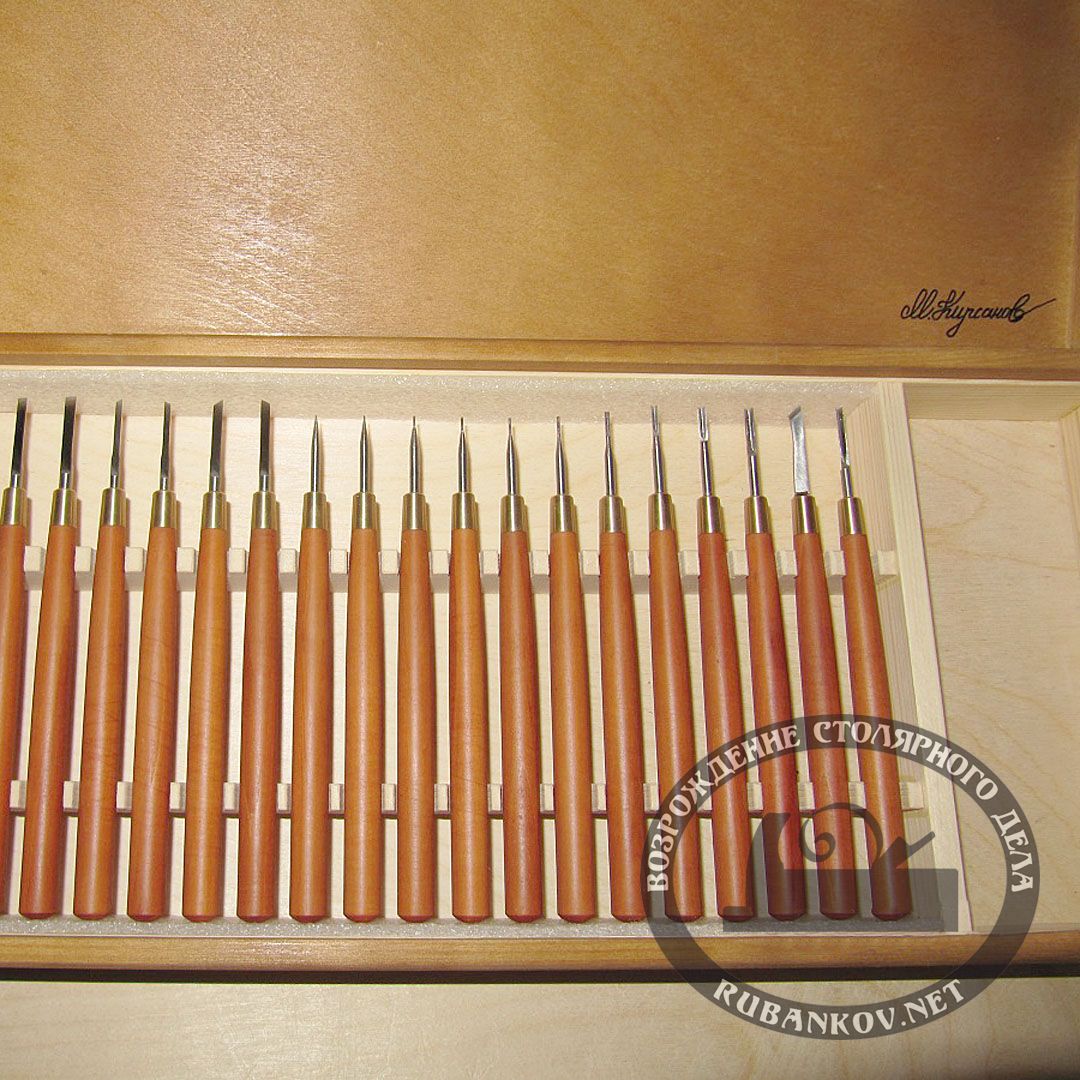 Набор для резьбы по дереву, ПЕТРОГРАДЪ, N16, 23 предмета, стамесочная рукоять. Авторский набор мини-резцов для миниатюрной резьбы по дереву. Прекрасно подойдут для моделистов. Инструмент для резьбы выполнен из стали Р6М5. Рукояти изготавливаются из различных благородных пород древесины, например, бук, груша и др. Сейчас наборы для резьбы выпускаются двух типов: прямые и грибовидные. Поставляются фанерной в коробке. Все резцы заточены и готовы к работе.