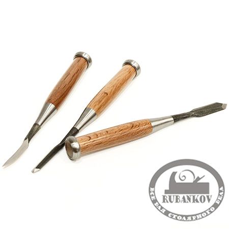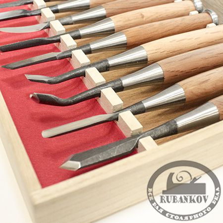 Данный набор с содержит специализированные резцы и стамески которые практически невозможно найти в других наборах: клюкарзы с плоской частью, стамески Yariganna и др. Кузнечная склепка двух металлов позволяет получить исключительную стойкость режущей кромки. Легкость заточки и долгое время работы позволит вам заниматься исключительно резьбой, а не постоянной заточкой инструмента.