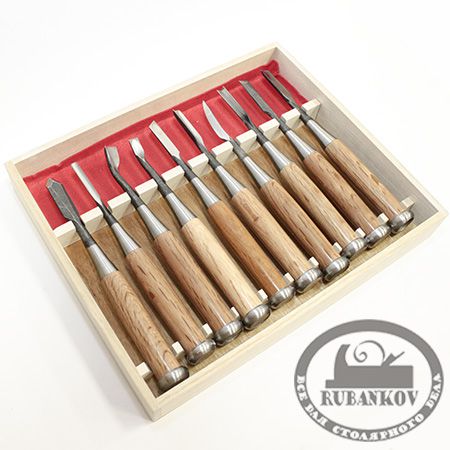 Для безопасности лезвия покрыты защитным лаком и упакованы в деревянную подарочную коробку. Данный набор может послужить прекрасным подарком любому мастеру.