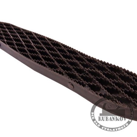 Японские двухсторонние рашпили. Особая конструкция рашпилей позволяют получать чистую поверхность, и уменьшает время окончательного шлифования в разы. Выпускаются в 2 типоразмерах длины полотна: 200 и 250мм. Полная длина рашилей 340мм и 390 мм соответственно. Одна сторона рашпиля предназначена для удаления большого количества материала и имеет 11 зубьев на дюйм (11 TPI). Вторая обеспечивает чистую финишную поверхность и имеет 25 зубьев на дюйм (25 TPI). Решетчатая структура эффективно удаляет опилки из зоны резания. Термообработка режущего полотна позволяет обрабатывать не только дерево, а также и пластик.