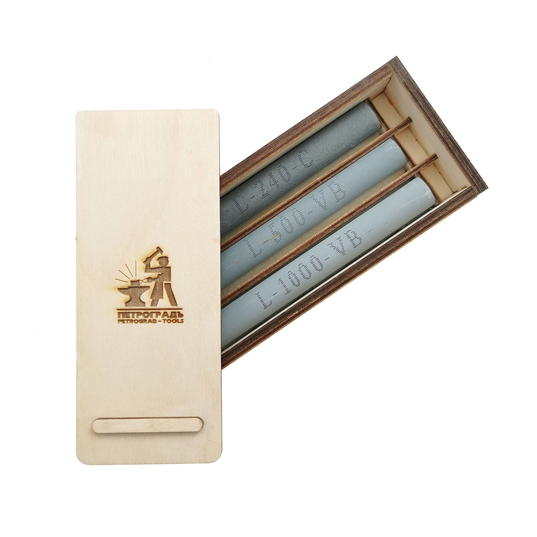 Абразивные водные камни (бруски) цилиндрической формы. Зернистость: 240, 500, 1000,2000. Размер ф15х120мм. Абразивное зерно - карбид кремния. Связка - керамика. Твёрдость I обеспечивает минимальный износ камня при работе. При заточке не перегревается сталь. Не требует использования масла. Перед использованием замочить в воде на 2-10 мин. Используются для заточки и задания скосов.