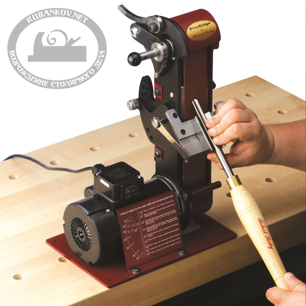 Приспособление имеет V - образное ложе. Позволяет легко производить заточку токарных полукруглых резцов и полукруглых стамесок. Устанавливается на опорный стол.