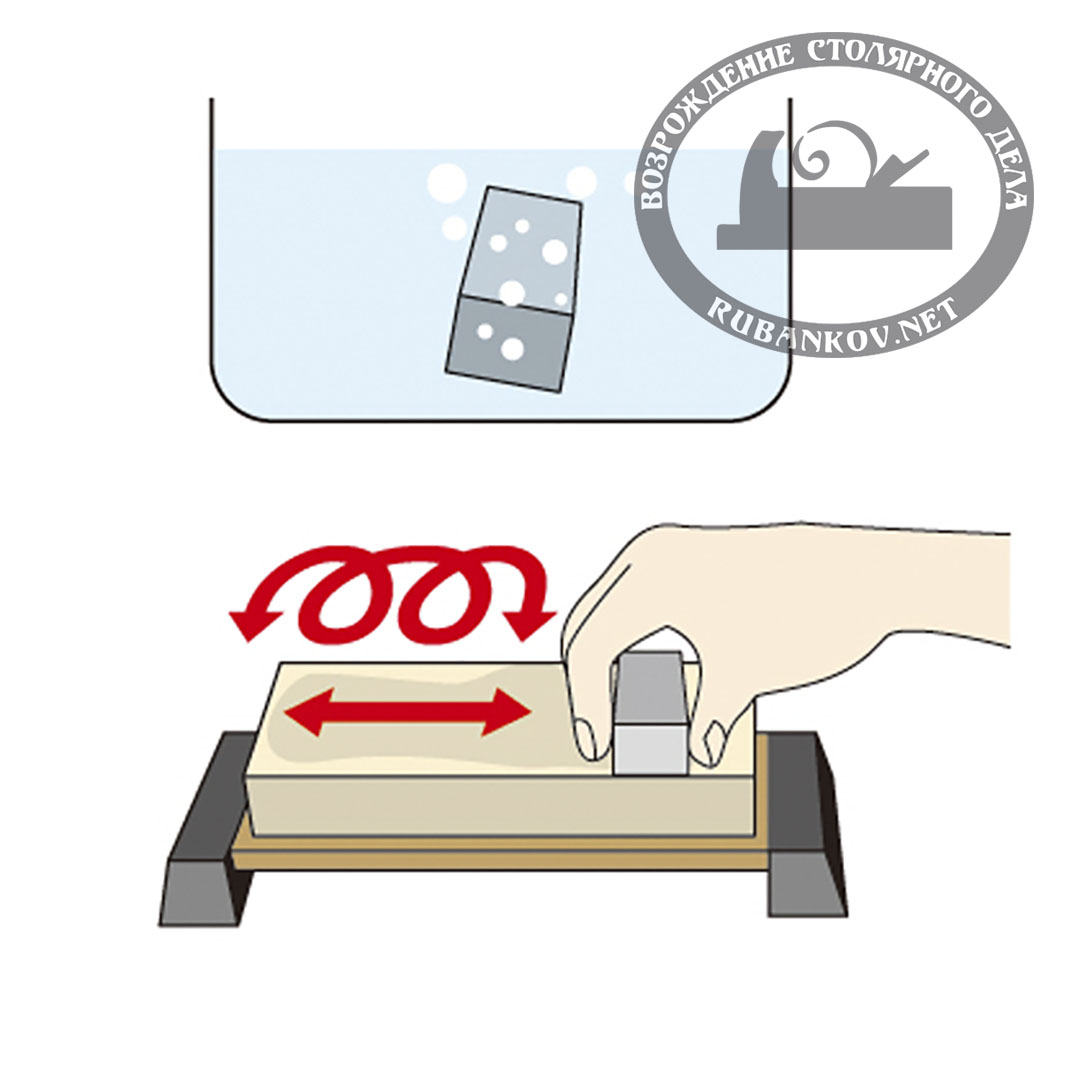 Чтобы полностью насладиться своими камнями используйте искусственную Нагуру до и после работы. Она очищает поверхность точильного камня позволяя держать его в рабочем состоянии. Пожалуйста, используйте брусок с достаточным количеством воды.