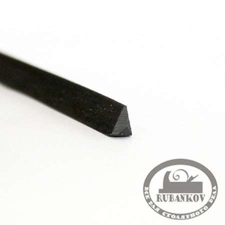 Напильник ДТП. Длина рабочей части напильника - 100мм. Ширина - 5мм, высота 7мм. Треугольный профиль с острым углом. Насечка - N3. Радиус на грани смягчает агрессивность напильника и позволяют уберечь зубья пилы от скалывания во время заточки. Без рукояти.Используются для заточки мелких и японских пил.