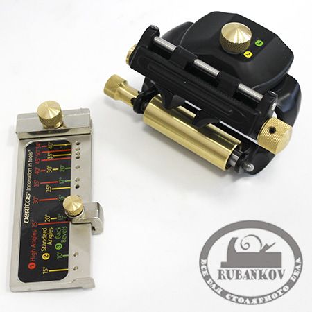 В комплекте : головная часть для узких лезвий, стандартная роликовая база (цилиндрический ролик) и шаблон для выставления углов. Материал корпуса - алюминий, ролика - латунь. Производство - Veritas (Канада).