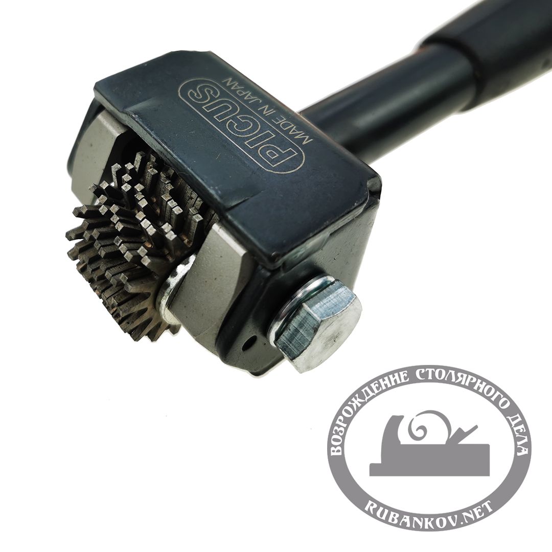 Шарошка TS-24S для более мелких кругов и деликатных работ, например, выравнивания небольших кругов и абразивных насадок для бормашин. Длина - 195мм, Ширина - 45, высота - 37мм. Ширина рабочей части 18мм. Ось на которую устанавливаются шаржирующие звездочки вставляется в специальные шестигранные шайбы. Отверстия в этих шайбах выполняют роль скользящих подшипников. В шайбе 6 отверстий, что значительно увеличивает срок службы инструмента.