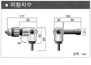 Угловая насадка на дрель Kanzawa изогнутая под углом 90 градусов. Используется для сверления отверстий и заворачивания шурупов в труднодоступных местах. Размеры 117 х 89 х 36 мм. Трехкулачковый патрон с диапазоном зажима от 1.5 до 10 мм. Рукоять может крепится в 3-х положениях. Корпус - алюминий. Механизм на шарикоподшипниках. Шестигранный ведущий вал на 8 мм. Масса 500 г. Рукоять снабжена съемной крышкой для хранения бит. Места крепления рукояти закрыти винтами для предотвращения попадания пыли в механизм. Ключ для зажима патрона в комплекте. Производство Япония.