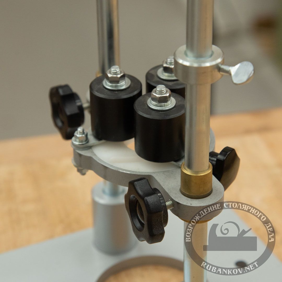 Стойка подходит для использования экстрадлинных свёрл диаметром от 9 мм до 30 мм. Для точного удержания села сверла используется специальный направитель - который позволяет минимизировать увод длинных сверл при работе с дрелью. При использовании коротких осевых инструментов направитель можно снять.