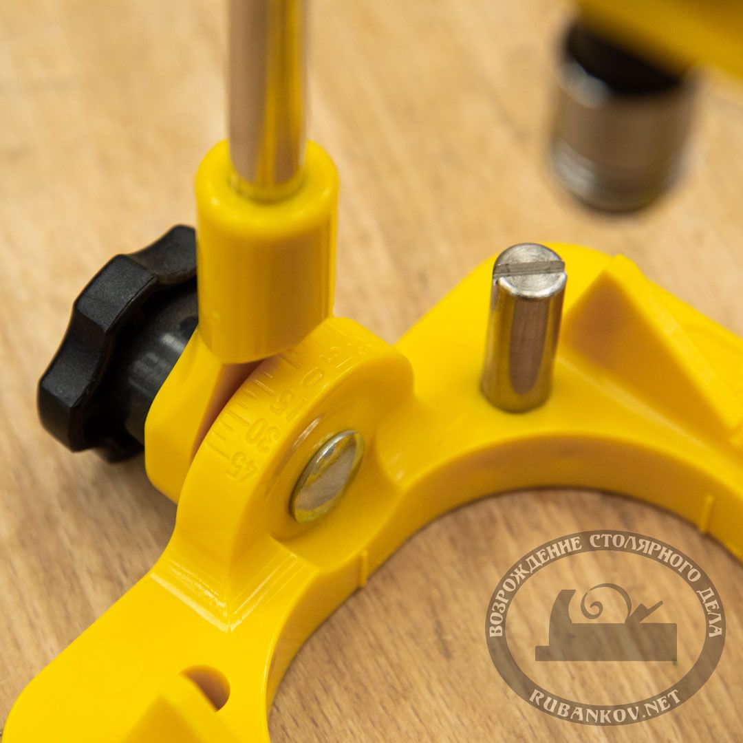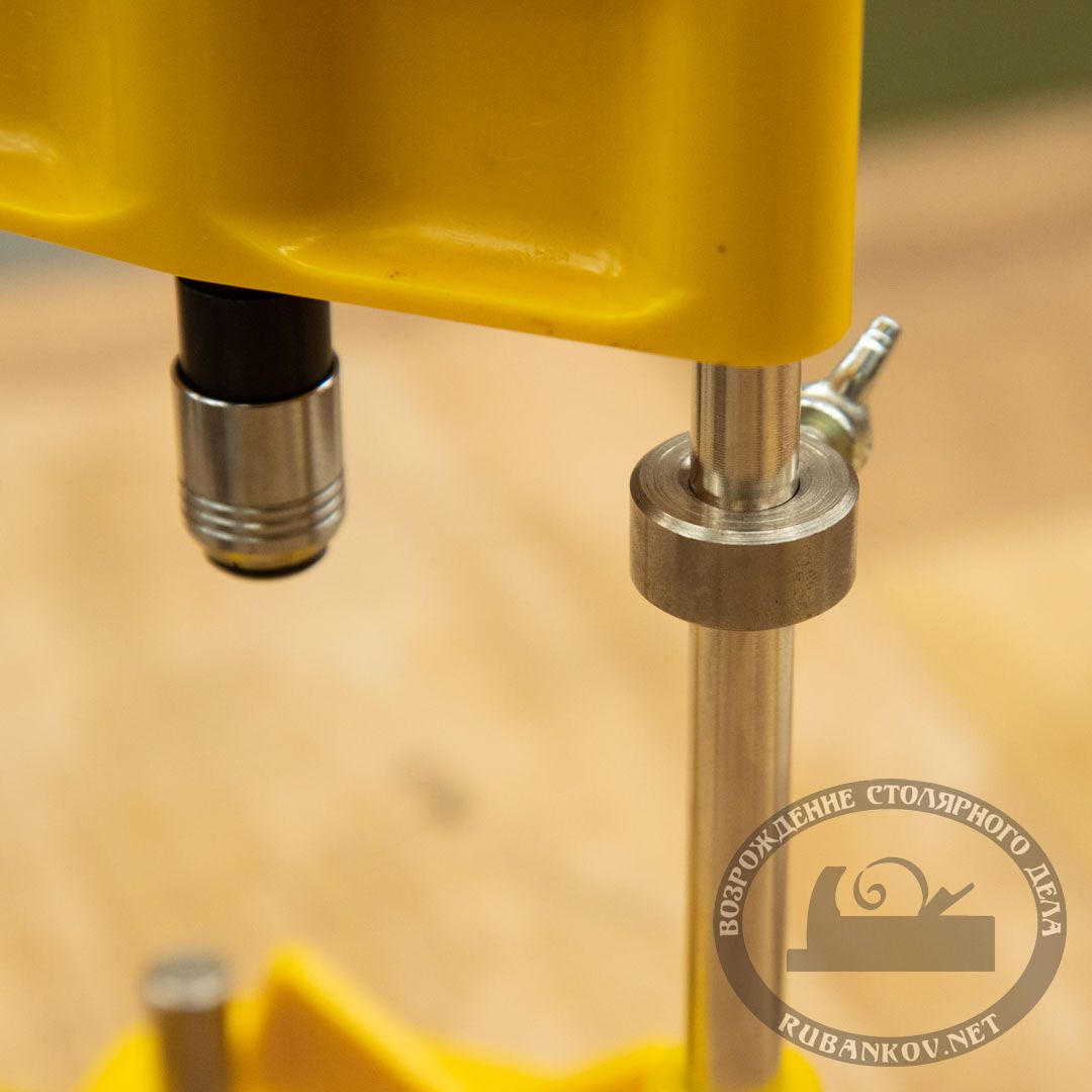 Стойка для сверления марки Star-M (модель 50W) предназначена для точного строго направленного сверления отверстий. Стойка может наклоняться на угол от 0° до 45°, градуировка шкалы 5°. Стандартный шестигранный хвостовик 6,35мм позволяет использовать в качестве инструмента шуруповерт, дрель и прочий инструмент. Специальный патрон предназначен для быстрого захвата стандартного шестигранного хвостовика. Фиксация сверла происходит механическим путем. На стойках расположены упоры для регулировки глубины сверления. Призма-образный упор на базе позволяет безопасно сверлить тела вращения. Переставные штифты для центроуловителя с установкой на доску или дверь. Эффективная длина хода каретки - 150мм. Отверстие в базе позволяет сверлить коронками вплоть до диаметра 54мм (например для установки ручек в двери). Допустимая скорость вращения 3000 об/мин. Производство Star-M (Япония)