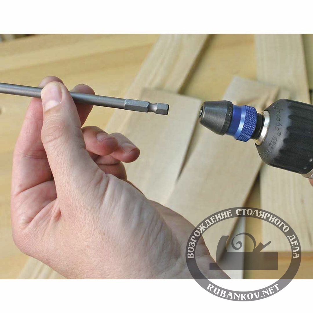 Сверло с шестигранным хвостовиком 3/8" (9 мм) устанавливается непосредственно в быстрозажимном патроне.