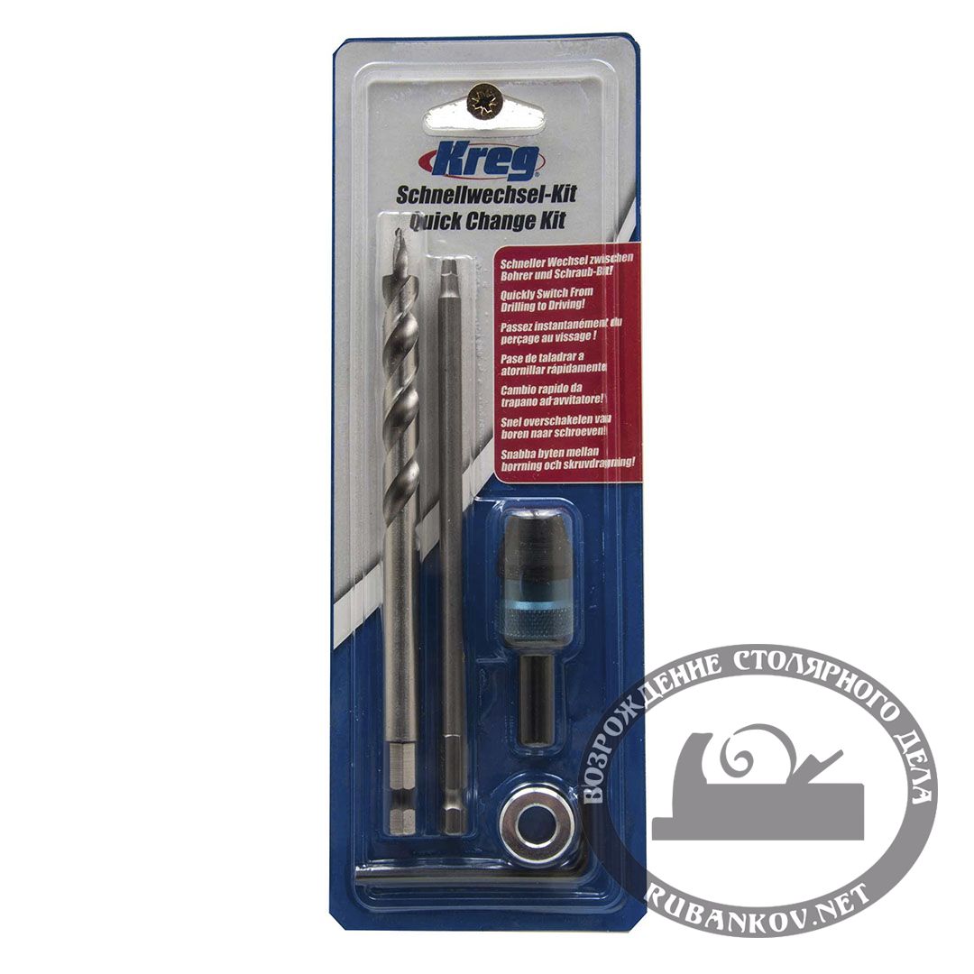 В комплект Quick-Change Pocket-Hole Kit включает все, что вам нужно для переключения от сверления отверстий, до завинчивания винтов за считанные секунды. Совместим со всеми кондукторами Kreg Jigs®.