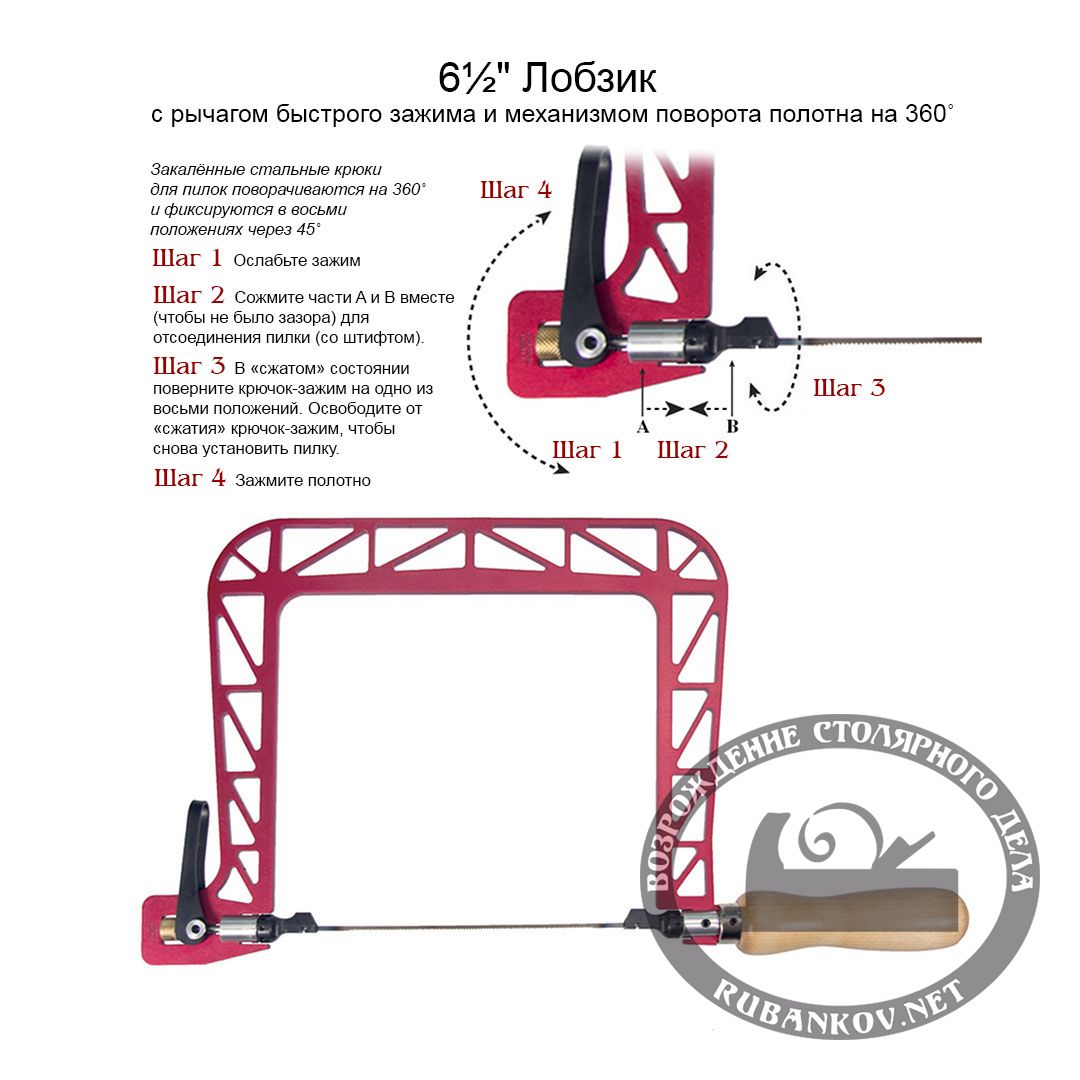 Лобзик ручной Knew Concept из серии Coping Saw со штифтовыми пилками. Полотно натягивается с помощью кулачкового рычага и при натяжении полотно «поет» при щипке. Крис Шварц (Popular Woodworking) сказал: «... это больше похоже на пиление с помощью негнущийся струны, нежели на выпиливание болтающийся стальной сосиской (что типично для большинства пил)». Теперь манёвренность вашего лобзика безгранична. Вы можете делать повороты сильнее и резче, чем когда-либо прежде.