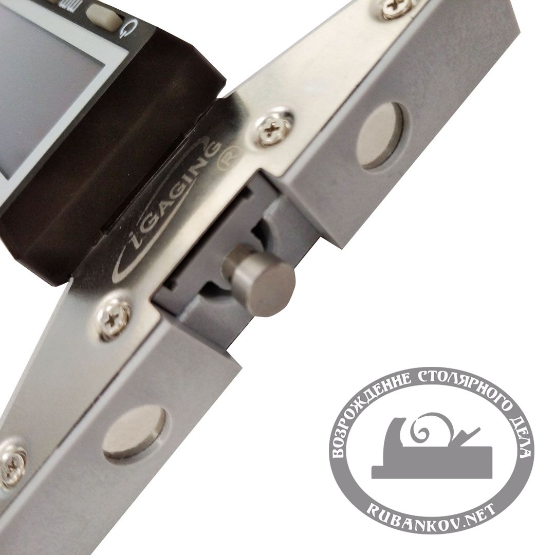 Высотомер цифровой для ручных рубанков 0-1,6мм, iGaging. Предназначен для быстрого и точного выставления вылета ножа рубанка, регулировки ножей на фуганке. В основание вмонтированы два мощных магнита, которые надежно удерживают высотомер на подошве рубанка. Измерительная штанга подпружинена и позволяет с минимальной погрешностью производить измерения. Рубанок в комплект не входит.