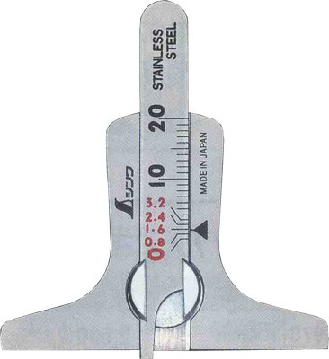Глубиномер с диапазоном измерения от 0 до 20 мм. Точность измерения +/- 0.1 мм. Имеет специальную разметку на 0.8, 1.6, 2.4, 3.2 мм для измерения глубины протектора колес автомобиля (мотоциклы, легковые автомобили, автобусы, грузовые автомобили). Размер 54 х 60 мм. Толщина 3 мм. Материал нерж. сталь. Производство Shinwa (Япония).