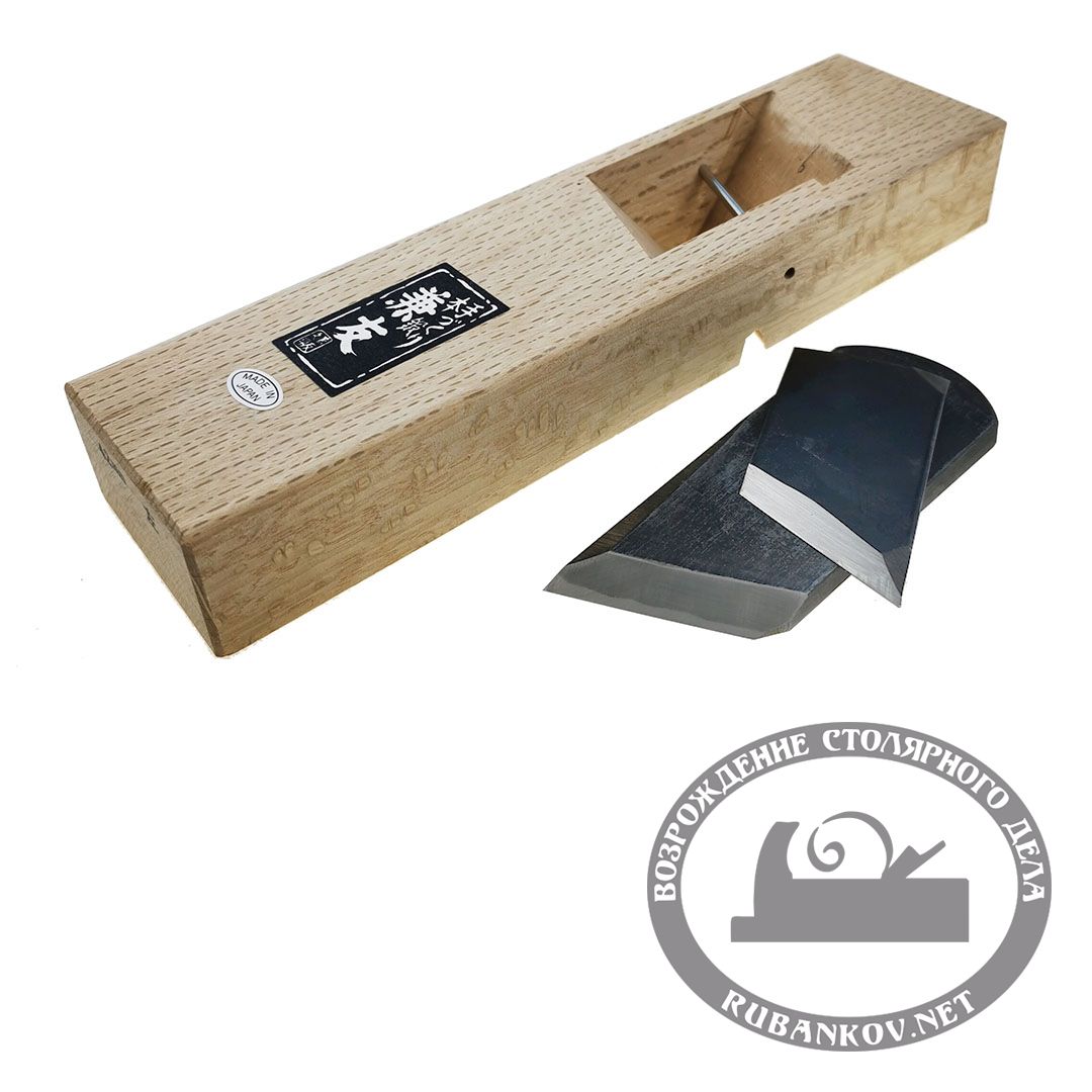 Рубанок KANE, Kiwa-Hidari, отборник левый, колодка 237*60мм, нож 42мм. Японский деревянный фальцгобель предназначен для острагивания фальцев на левой стороне детали, шипов и др. Колодка выполнена из белого дуба. Лезвие толщиной 4мм из двухслойной стали с режущим слоем твердостью 62-64 HRc и основным слоем из более мягкой стали 50-55 HRc. Для более чистого строгания рубанок оснащен двойным ножом со стружколомом. Нож и стружколом имеют поднутрение для более быстрой доводки, как на японских стамесках. Сталь ножа высокопрочная оружейная сталь Japanese Sword Still. Перед началом работы рубанок необходимо довести нож и колодку, и отрегулировать его. Рубанок из упаковки заточен, но не готов к работе. Традиционно для японского инструмента строгание производится на себя. Длина рубанка 237 мм, ширина - 60 мм. Ширина ножа - 42мм. Масса 620 г.