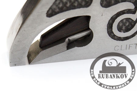 Рубанок-зензубель Clifton 400 Shoulder Rebate Plane. Длина рубанка - 80мм, ширина колодки - 11мм. Нож выкован из инструментальной высокоуглеродистой стали и закален в масле до 59-61HRc. Ширина ножа - 11мм, толщина ножа - 3mm. Угол заточки ножа - 25º, с микрофаской до 30º. Нож установлен в колодку под углом в 20º. Колодка выполнена из серого ковкого чугуна с шаровидным графитом, поверхность колодки точно шлифована и полирована, образует угол в 90º и комфортно лежит в руке. Клин выполнен из палисандра. Рубанок предназначен для точных работ при обработке четвертей. Масса - 170г. Производство - Clico (Шеффилд, Великобритания).