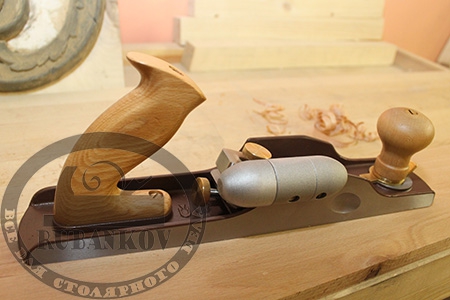 Хороший торцовочный рубанок с гладкой ровной подошвой и точной подгонкой узлов. Рубанок с малым углом установки ножа в 12° совместно с углом заточки лезвия в 25° дает эффективный угол реза в 37°. Колодка отлита из стали. Нож из углеродистой стали SK-4 (Состав: C 0.90-1.00%, Si .35%, Mn .50%, P .03%, S .03%, Cr .20%, Ni .25%, Cu .30%) толщиной - 3.1 мм, шириной - 50мм и жесткостью 62 - HRC. Точная регулировка вылета лезвия с помощью специального механизма. Материал фурнитуры - латунь. Длина колодки - 355 мм. Масса - 2670 г. Используется для обработки торцов, для строгания сложной, сучковатой древесины и работы с длинными заготовками. Для удобства работы комплектуется съемной боковой ручкой (Hot Dog) на правый борт или левый борт. Производство Тайвань (под маркой Dick).