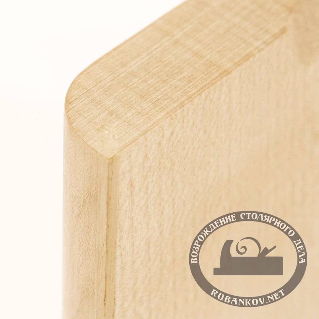 Этот легкий и красиво выполненный рубанок, отлично подходит для изготовления рамок и фризов. Рубанок-полугалтельник представлен в двух вариантах правый и левый. Рубанок предназначен для формирования галтелей. Колодка выполнена из клена, рабочая кромка укреплена вставкой из граба, клин из красного дерева. Рубанок-полугалтельник имеет покрыт грунтовочным маслом - в один слой и вторым слоем покрыто маслом и воском. Ширина ножа 20 мм, угол наклона 55 градусов. Абсолютно каждый нож подвергается проверке твердомером. Твердая сторона имеет 2 точки от алмазного конуса - тест, и контрольный тест. нож имеет следующие размеры: ширина рабочей части 20 мм, общая длина 175 мм. Железка выполнена из стали 9ХС. Закалена до твердости 59-61 HRC. Все железки клиновидные с углом клина 0,5 градус.