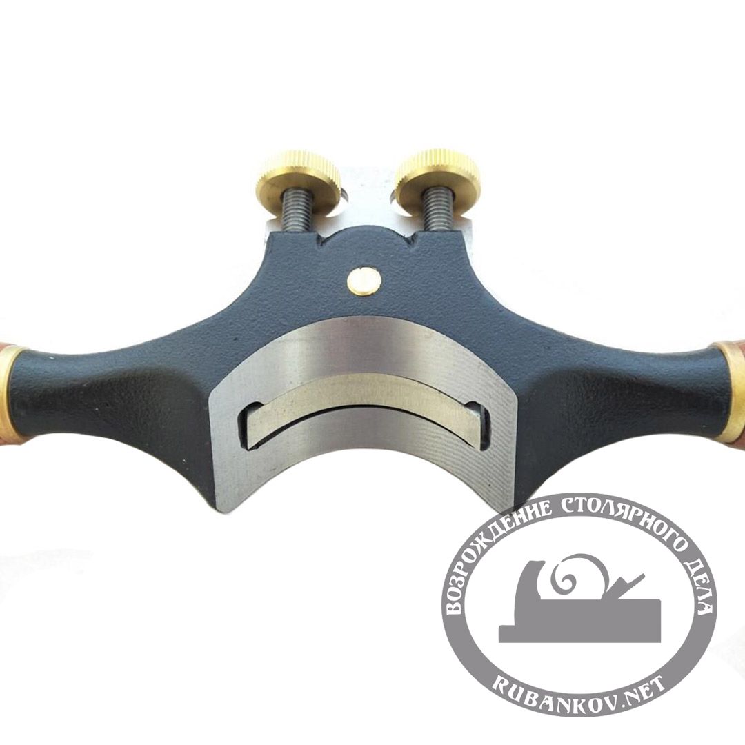 Точно выполненная вогнутая подошва из ковкого чугуна. Удобные рукояти, выполненные из древесины тропических пород, с выемками на колодке позволяют контролировать работу без нагрузки на пальцы. Вылет и наклон лезвия точно регулируется с помощью 2-х винтов. При желании можно приобрести комплект для самостоятельного изготовления рукоятей. Материал винтов - латунь.