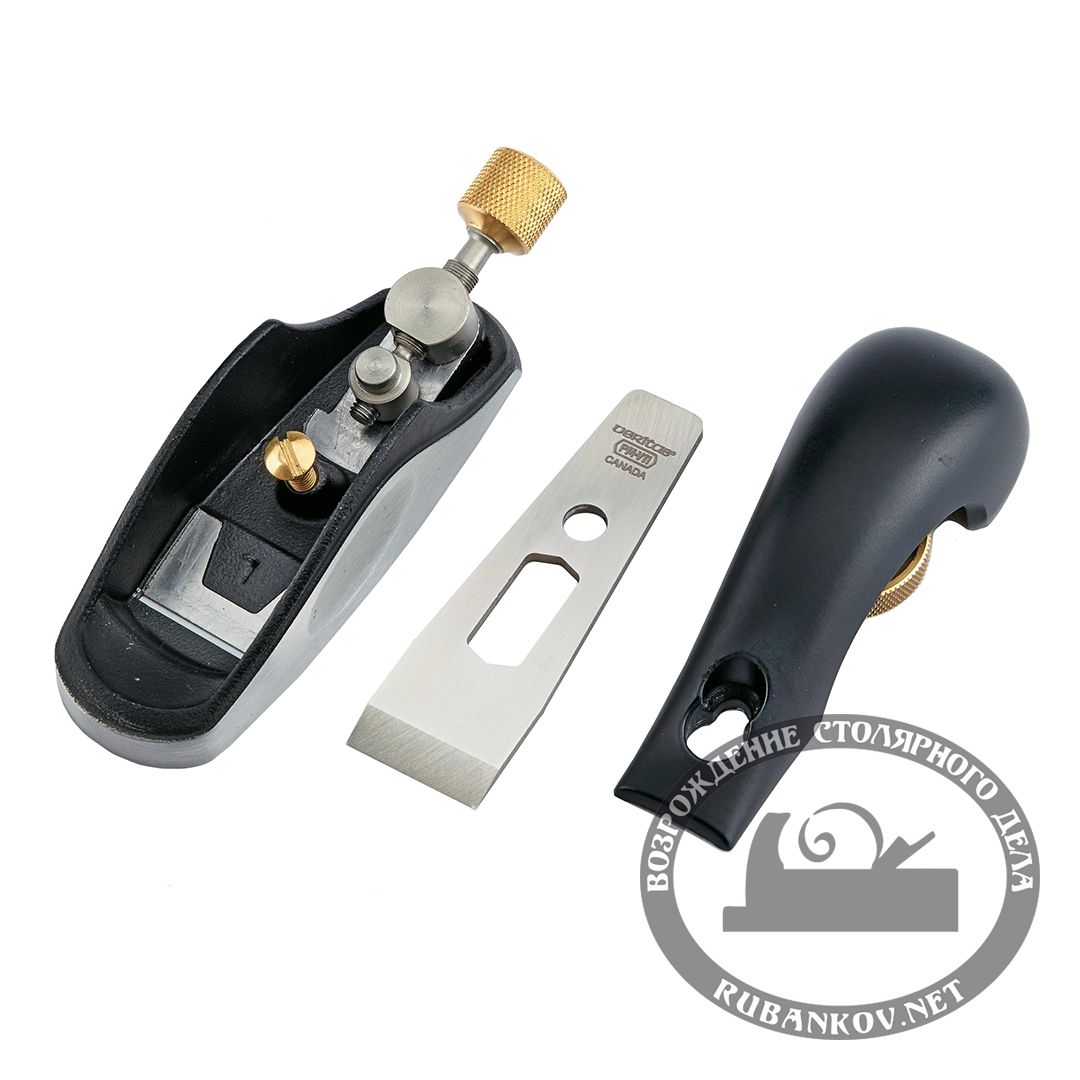 Этот рубанок с низким углом и полностью функциональным комбинированным механизмом подачи и боковой регулировки. Рубанок имеет превосходные режущее качества, чем вы могли ожидать от такого маленького инструмента. Это делает его превосходно подходящим для деликатных работ по подрезке, особенно в тех случаях, где большая плоскость была бы слишком громоздкой, таких как моделирование и изготовление инструментов.