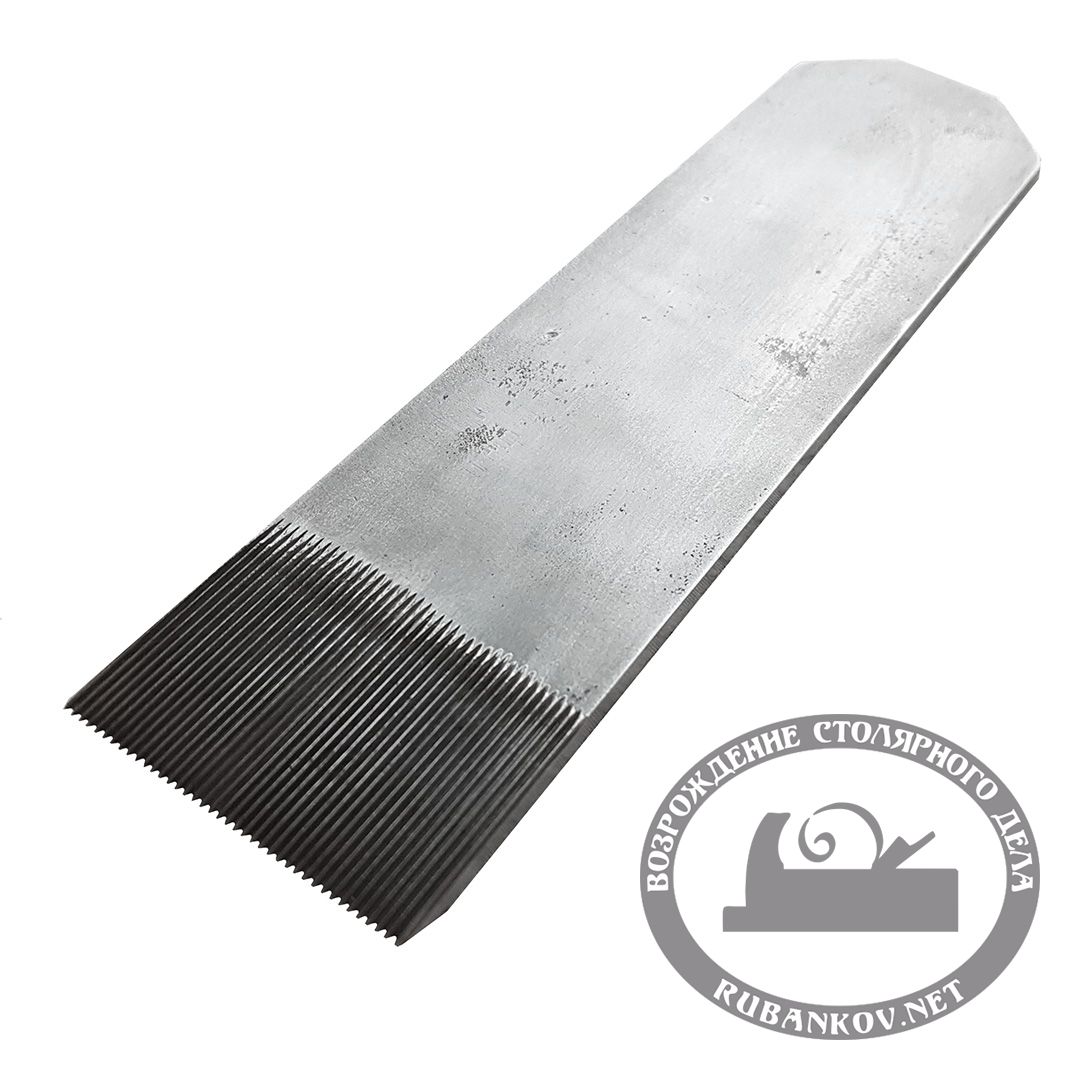 Все железки ПЕТРОГРАДЪ имеют клиновидный спуск с углом 0,5 градуса. Это выгодно отличает их от других рубаночных ножей, и делает их идеально подходящими для деревянных рубанков с клиновой фиксацией ножа. Рабочая сторона ножа, закалённая до твёрдости 59-61 HRc, помечена небольшими точками, остающимися от проверки ножа твёрдомером. Эти точки, имеющиеся на каждом ноже, являются свидетельством проверки ножей и не влияют на работоспособность изделия.