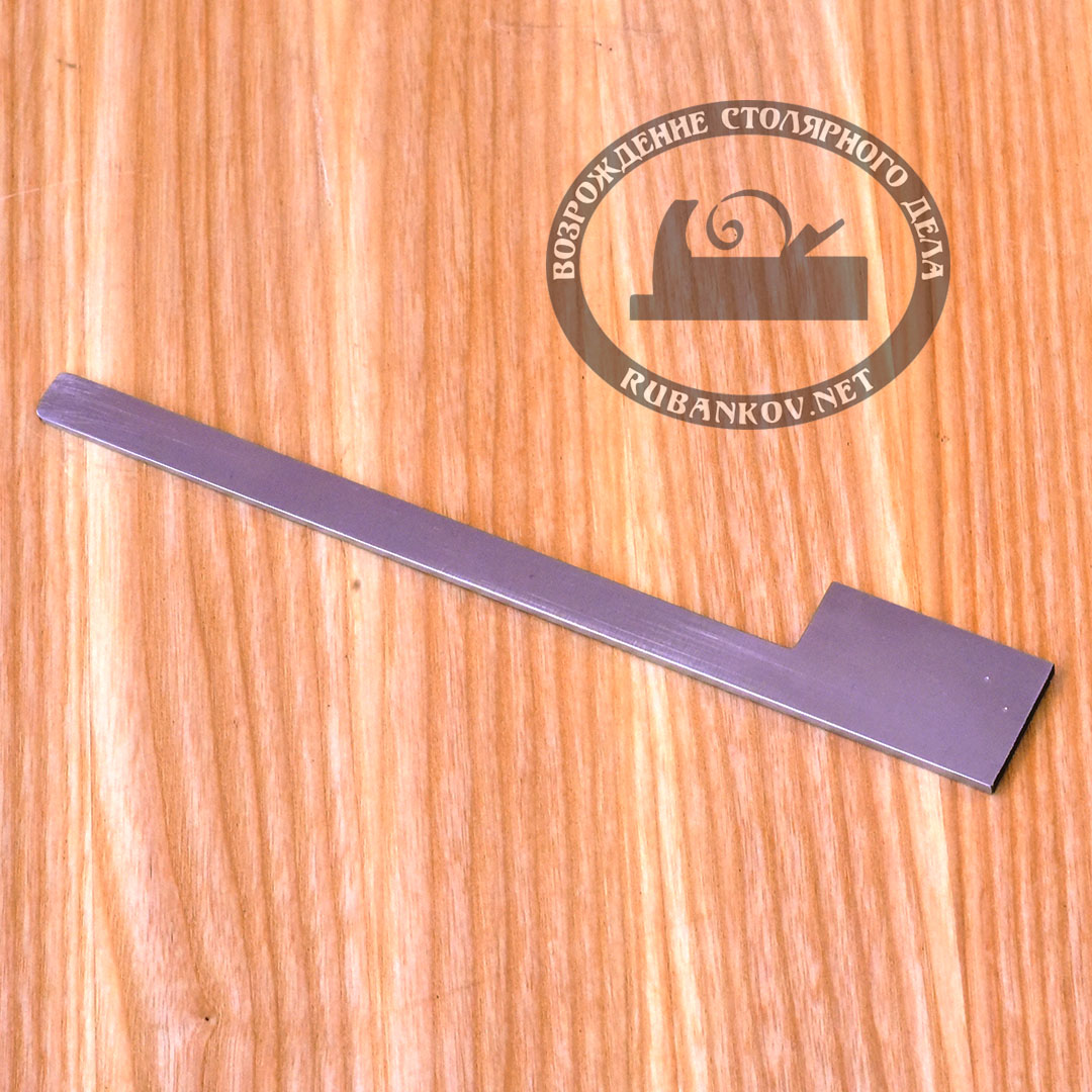 Заготовка ножа для калёвки изготовлена на фабрике столярных и плотницких инструментов ПЕТРОГРАДЪ. Железка выполнена из стали 9ХС. Закалена до твердости 59-61 HRC.