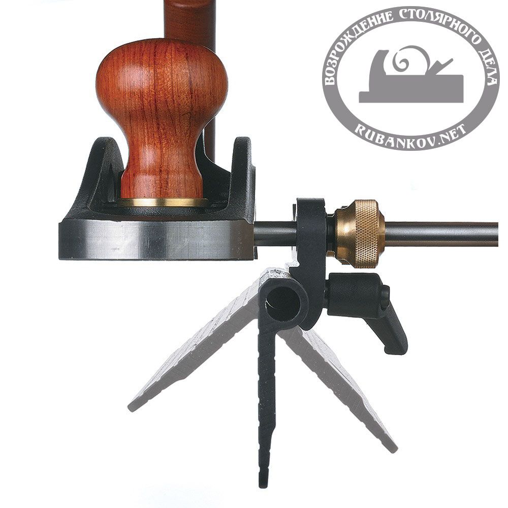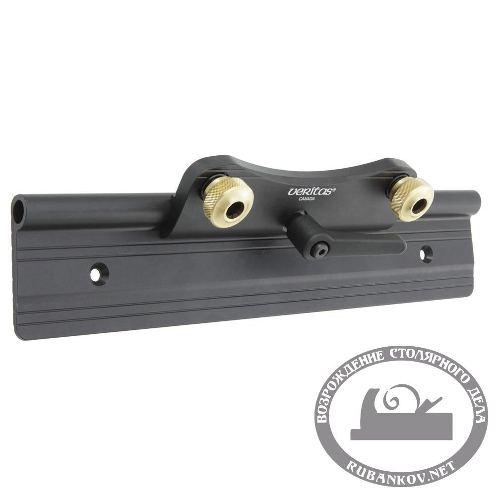 Регулируемый упор для фальцгобелей Veritas предназначен для строгания плоскостей под углом от 45 ° до 135 °к кромке, например фигарейных полей и др. Длина упора 280мм, ширина - 60мм. Углы задаются по угольнику, малке или по шаблону. Фиксация производится рычагом. Монтируется упор на стержнях ф8мм фальцгобеля посредством двух цанговых зажимов с латунными гайками. Дополнительно к упору можно крепить деревянные планки для строгания под углами меньше 45 °. Межцентровое расстояние - 114мм. Производство - Veritas (Канада)