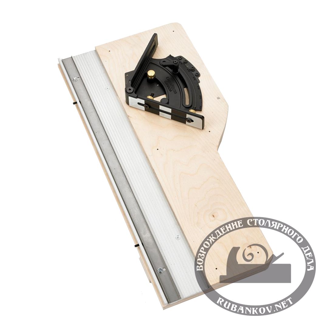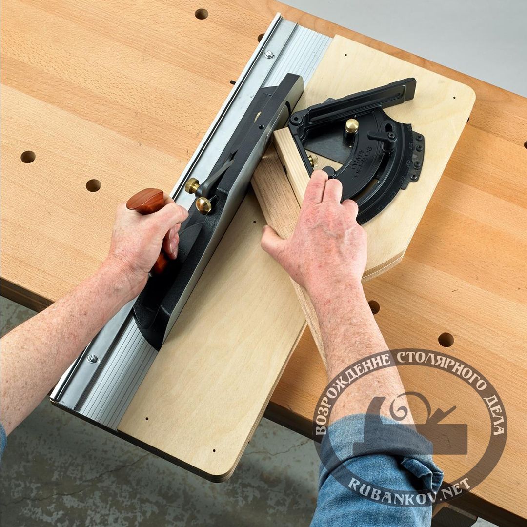 Донце Veritas Shooting Board. Этот правый или левый угловой упор — донце для подгонки, заусовки и прифуговки деталей. Его настройка проста и интуитивно понятна любому мастеру. Подпружиненная ручка надежно фиксирует транспортир в заданном положении. На транспортире присутствует нулевая регулируемая метка. Есть возможность быстрой установки заданных углов от 0°, 18°, 22.5°, 25.7°, 30°, 36°, 45° и до 60°. Это необходимо для сборки многоугольных конструкций от 4 до 10 углов. Комплект из транспортира и направляющей для рубанка собраны на фанере толщиной 35мм. Для удобства работы на нижней части основания сделана упорная планка для фиксации донца.