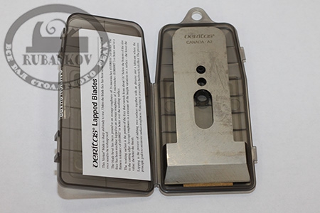 Нож для рубанка Veritas Jack Rabbet Plane. Ширина ножа - 57мм. Нож выполнен из высокоуглеродистой стали A2 (Состав: 1.00% С, 0.80% Мп, 0.30% Si, 5.25% Сг, 1.10% Mo, 0.20% V). Среднее отклонение профиля фаски - 0,0004064мм. Поверхность с средней шероховатостью - 0,000127мм. Отшлифованность поверхности можно заметить по ее матовости, дальнейшая шлифовка приведет к отполированной поверхности, что никак не улучшит качество реза. Используется с зензубелем Veritas. Поставляется в защитном боксе. Производство - Veritas (Канада).