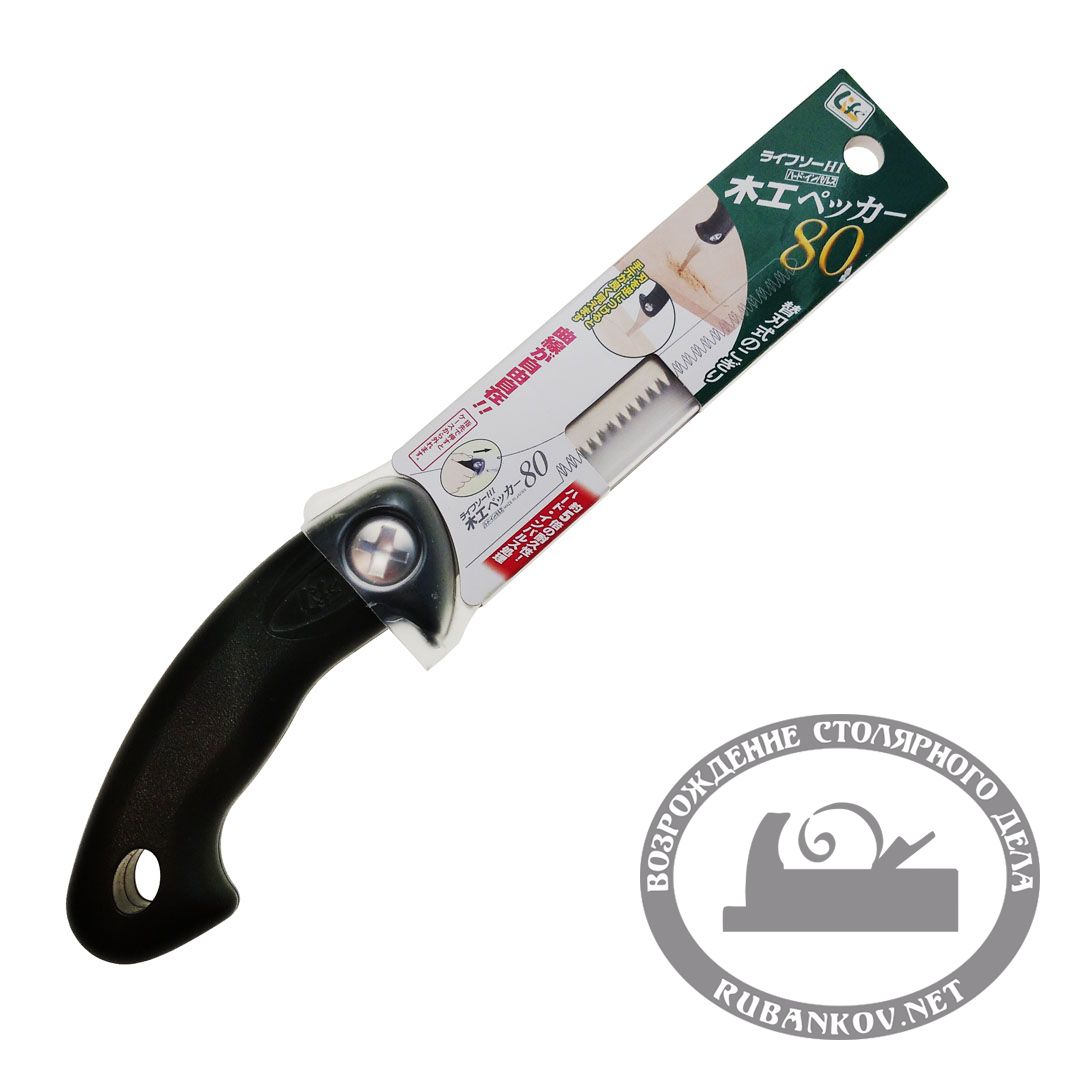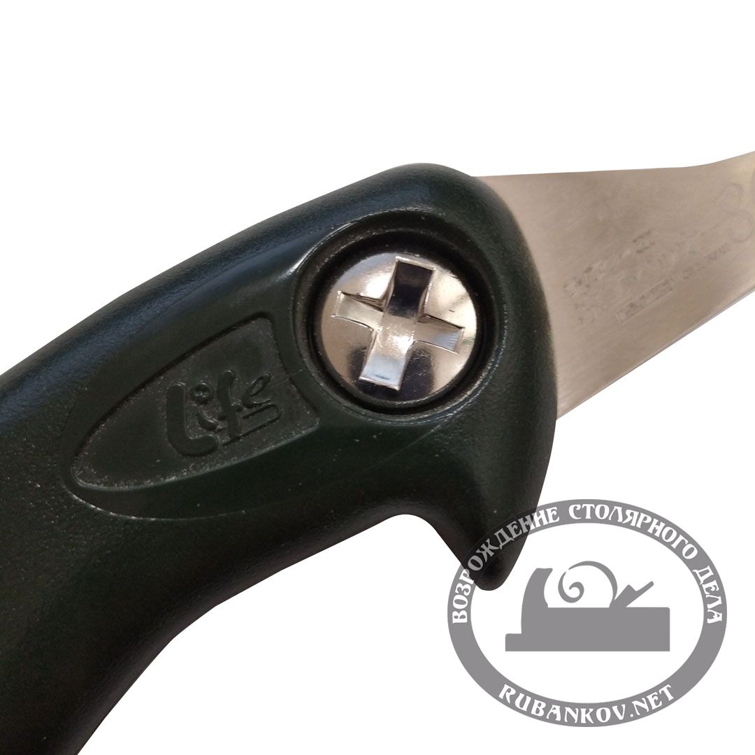 Пила выкружная Z-Saw S-80, 80мм, 16tpi, 0.9мм, пластиковая рукоять. Предназначена для пиления листового материала, такого как фанера, дсп, мдф и тонкие щиты массива. Японская пила z-saw для фигурного чернового пиления. Специально разработанное длинное и прочное лезвие с трехгранными зубьями может выпиливать различные геометрические формы. Узкое лезвие может значительно снизить трение при пилении изогнутых линий. Выполнено из инструментальной стали с антикоррозийным покрытием. Длина полотна 80мм. Толщина полотна 0.9мм. Высота полотна — 9мм. Пропил — 1.3мм. Размер зуба — 1.6мм. Традиционный японский трапециевидный зуб направлен к рукояти и предполагает направление пиления на себя. Для удобства пиления в труднодоступных местах полотно можно устанавливать в двух положениях т.е. переворачивать его на 180град.