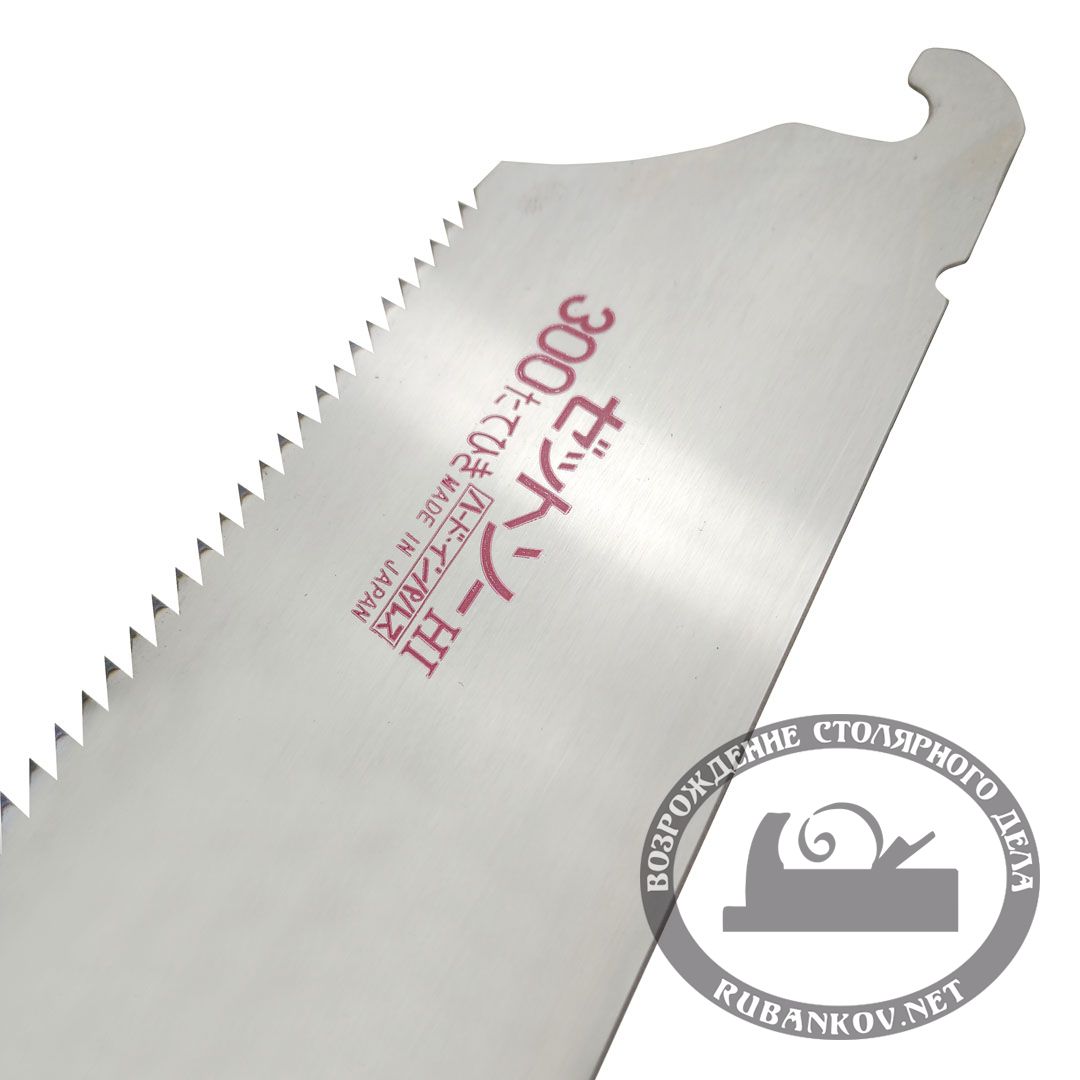 Пила Z-saw Kataba RIP H-300, 300мм, деревянная рукоять, для продольного пиления. Японская безобушковая пила для продольного распила древесины. Имеет переменный шаг зуба, уменьшающийся к рукояти, что позволяет легко запиливаться и увеличивает эффективность пиления. Зубья направлены к рукояти, что позволяет получать ровный рез не требующей дополнительной обработки. Длина лезвия 300 мм, общая - 660 мм. Ширина лезвия 50 мм, толщина 0.66 мм (толщина пропила 0.93 мм). Отсутствие обушка позволяет работать по всей ширине ножовки, с высокой эффективностью без ограничений по глубине. Деревянная рукоять обернутая ротангом. Возможность смены лезвия. Произведено в Японии.
