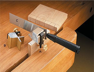 Это стусло позволяет быстро и с наименьшими усилиями выпиливать *ласточкины хвосты* даже любителям. Соотношение 14° для получения очень прочного и красивого соединения. Достаточно зажать стусло с помощью винта на торце заготовки, и двигая пилу вдоль одной из сторон получить необходимый пропил. Боковые стороны стусла снабжены магнитами и пластиковыми накладками, благодаря чему выдерживается необходимый угол и лезвие пилы легко скользит. Толщина заготовки - до 25 мм. Материал стусла - анодированный алюминий. Винты выполнены из латуни. Производство Veritas (Канада).