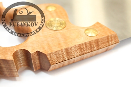 Пила Lie-Nielsen Panel RipCut 7 ppi (7 зубьев на дюйм) Длина полотна - 508мм, полная длина пилы - 610 мм. является небольшой отлично сбалансированной пилой, используемой в мастерской, где нет потребности в больших инструментах. Конусное полотно толщиной от 0.8мм до 0.7мм с разводкой в 0.127мм. Зубья для продольного распила. Материал полотна шведская полированная сталь твердостью 52 HRc, легко затачивается. Закрытая рукоять выполнена из свилеватого клена и соединена с полотном двумя латунными винтами и медальоном. Производство - Lie-Nielsen (США)