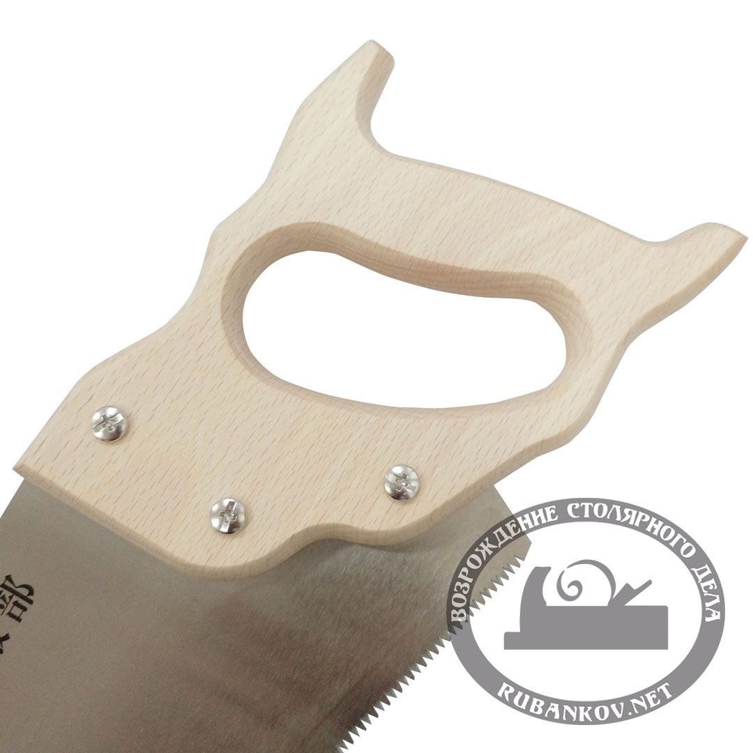 Пила-ножовка Turbo-Cut для поперечного распила (шаг 2,3мм) с классической европейской рукояткой и японским высокоэффективным полотном с высокой точностью и скоростью реза. Длина полотна - 330мм, полная длина - 440мм. Ширина полотна 40-120мм, толщина - 1мм. Толщина пропила - 1.5мм. Используется в первую очередь для пиления *от себя*, но также хорошо работает и *на себя*. Трехгранная заточка зуба позволяет работать без разводки. Зубья можно затачивать. Полотно с добавкой хрома защищает от коррозии. Деревянная рукоять крепится на полотно тремя винтами. Производство - Япония.