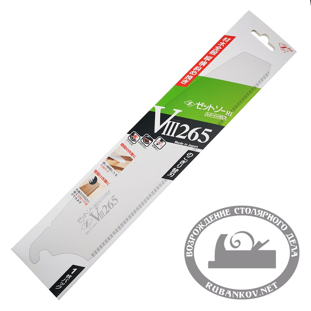 Полотно для пилы Z-Saw Kataba VIII 265, 265мм, 14tpi, 0.6мм, Полотно пилы с заужением на конце для работы в труднодоступных местах. Длина полотна - 265мм, толщина полотна — 0.6мм. Шаг зубьев - 14 на дюйм. Первый зуб крупнее остальных для быстрого запиливания в пласть древесины, для изготовления гнезд. Трапециевидный японский зуб с импульсной закалкой позволяет работать по мягким и твердым породам древесины. Зубья японской пилы направлены к рукояти, что позволяет легко запиливаться и получать ровный рез и чистый рез. Пила предназначена для поперечного, продольного и комбинированного реза. Масса — 288г. Эта пила не требует заточки и готова к работе.